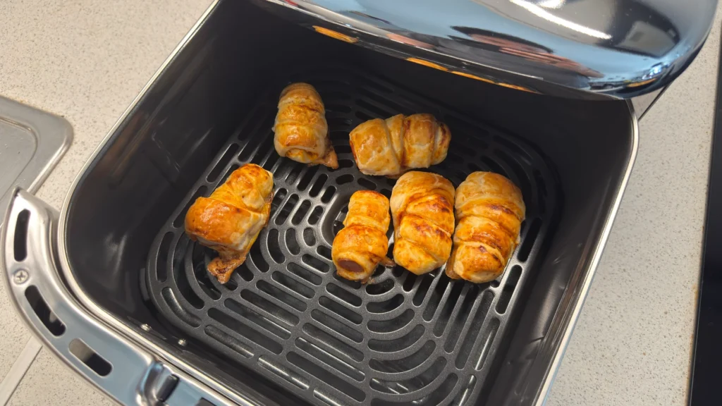 A legtöbbet az air fry funkciót alkalmaztuk. Kipróbáltuk mirelit hússal, de készítettünk benne természetesen hasábburgonyát is, és minden esetben tökéletes végeredményt kaptunk: a fogások kívülről kellemesen ropogósak, belülről puhák, átsültek voltak, ahogyan a nagy könyvben meg van írva.
