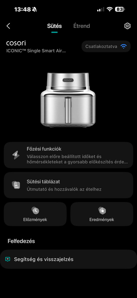Ha nem is feltétlenül elvárás, azért nagyon vagány extra, ha egy air fryert a telefonunkról is tudunk kezelni. A Cosori ezt is biztosítja ennél a készüléknél, nem kell mást tenni, csak letölteni a VeSync applikációt, csatlakoztatni a kettőt és már kész is.