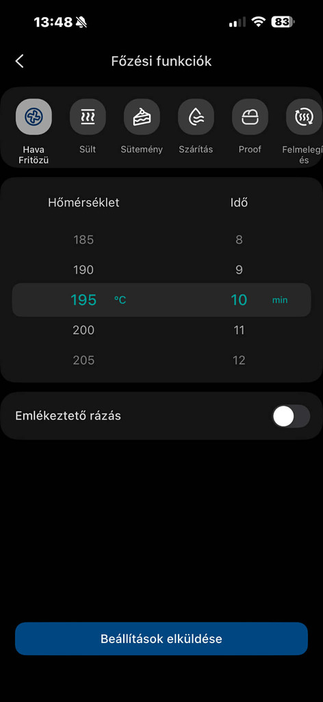 Indítani és megállítani ugyan nem lehet vele az air fryert, de a beállításokat elvégezhetjük akár utazás közben, és mire hazaérünk, csak bepakoljuk a sütnivalót és elindítjuk. Kényelem a köbön!
