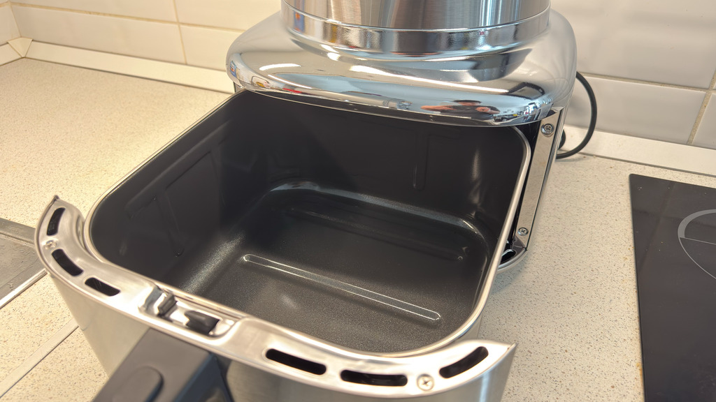 A non plus ultra, hogy az air fryer egy 6,2 literes kosarat kapott, ami kerámiabevonatos és PFAS-mentes – lefordítva könnyen tisztítható, nem tapad le rajta semmi, illetve biztonságos –, miközben azért egy Reddot Design Award díjat is nyert, amit szerintünk a rendhagyó forma miatt abszolút megérdemelt.