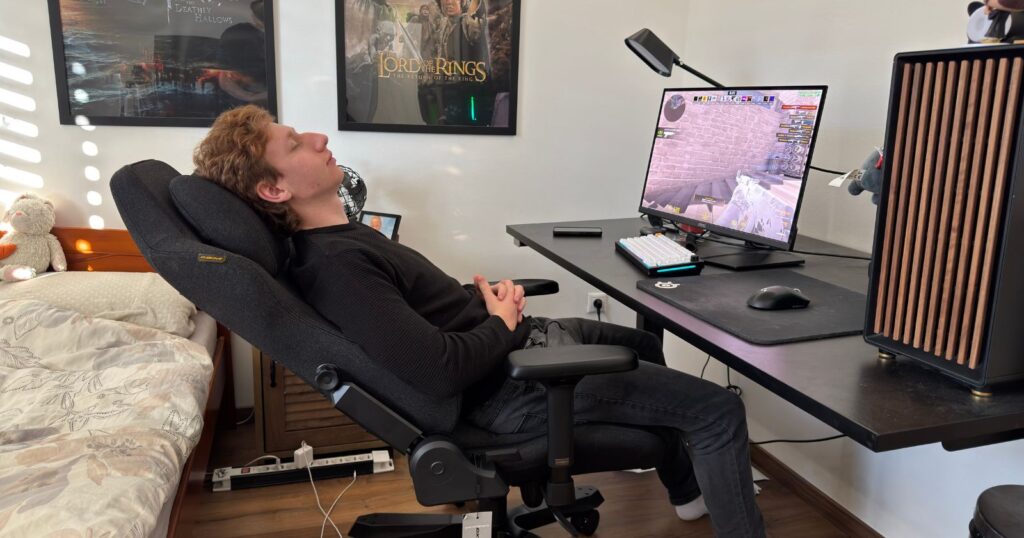 Nem mértünk utána, de nekünk kényelmes volt, sőt még hinta mód is van rajta, ami kifejezetten előnyös. Ami kicsit negatívum, hogy a kérdéses tartományban nem tudtuk bárhol megállítani a szék dőlését, illetve sokan keresik a 170-180 fokig ledönthető megoldásokat is – ez viszont itt hiányzik.
