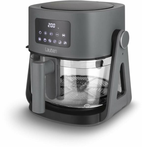 Ha valami, akkor a Lauben forrólevegős fritőzének termékdizájnja kifejezetten egyedire sikeredett. Nekünk nagyon tetszett ez a szürkés, feketés árnyalat, illetve az egész elrendezés, hiszen az áttetsző sütőkosarat gyakorlatilag minden oldalról láthatjuk, és ez közel sem hétköznapi megoldás a piacon.