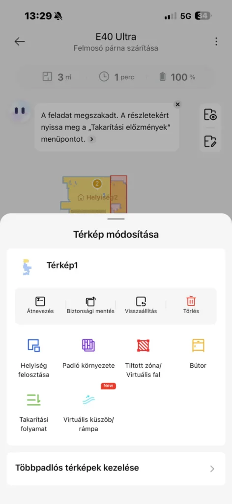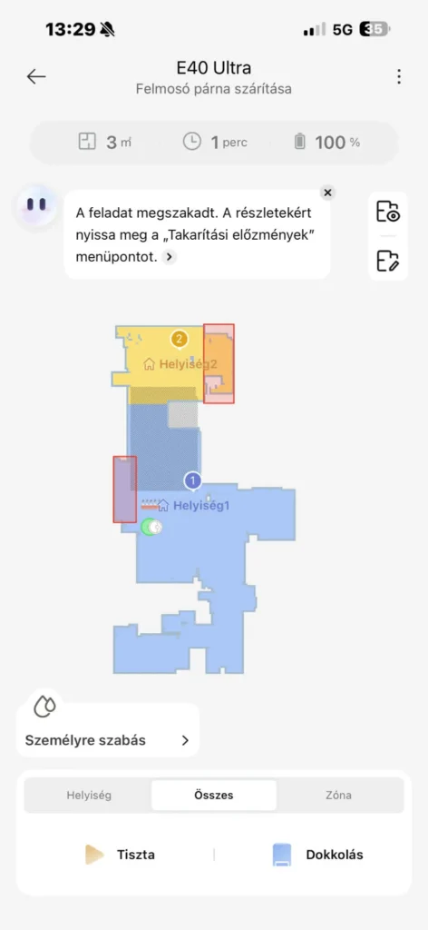 Ezzel abszolút meg voltunk elégedve – akárcsak a térképek minőségével –, egyedül az első feltérképezés után tapasztaltuk, hogy nem talált vissza a dokkolóra, de egy szünettel és folytatással ez a „hiba” is azonnal megoldódott.