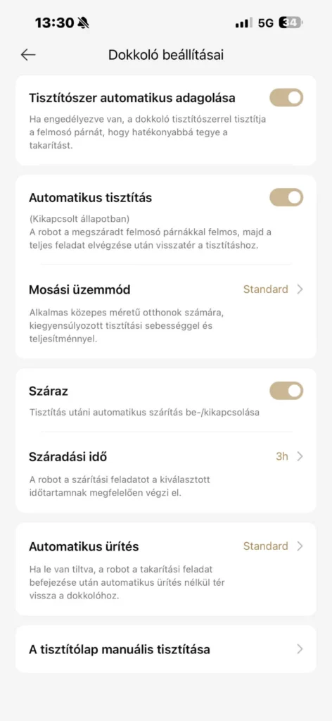 Nagy pozitívum az önürítő és öntisztító dokkoló – ami még meg is szárítja a mopokat –, a magyar nyelvű applikáció, a rengeteg beállítási lehetőség, a kiváló navigáció és úgy általánosságban az érzet, hogy 140 ezer forint környékén már mennyi mindent kapunk.