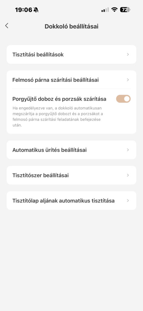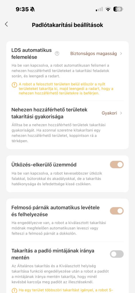 Kalibrálhatjuk továbbá itt, hogy a nehezen megközelíthető helyeket csak hetente egyszer, vagy minden alkalommal takarítsa, de sokat segít az alaposságban a foltfelismerő és a nagy szemcséjű üzemmód bekapcsolása is. Hiába vannak még csak béta fázisban, mindkettőt kipróbáltuk és nagyon jól működnek.