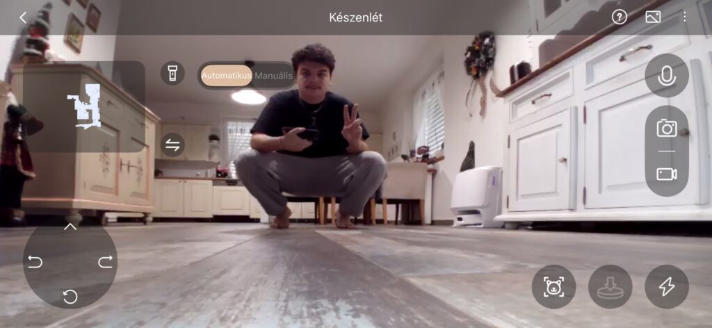 Természetesen kérhetünk itt kiegészítő takarítást, amivel a felmosás funkciót kalibrálhatjuk, sőt intelligens felmosópárna tisztítást is. Mivel van kamera a porszívón, ezért rögzíthetjük vele kisállatainkat, sőt megfigyelhetjük vagy megkereshetjük őket a lakásban.