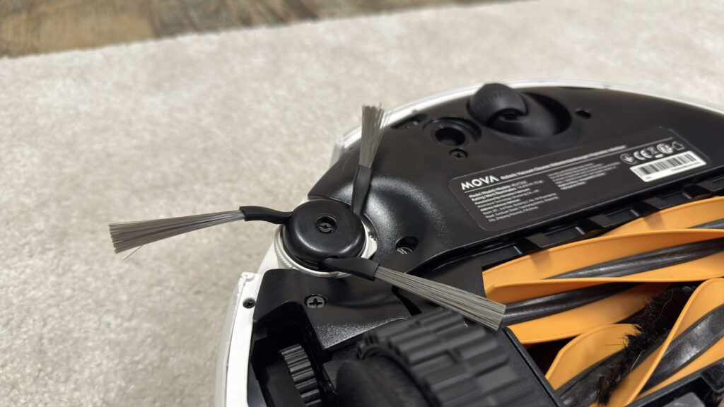 Hogy az oldalkefe kinyúlik a készülékházból, az a prémium szegmensben már alapelvárás, viszont a MOVA a főkefével együtt ezt is képes fel-le mozgatni – ez a CleanLift technológia, ami azt jelenti, hogy minden takarítóelem mozog –, így ez sem zavar semmit a felmosásban.
