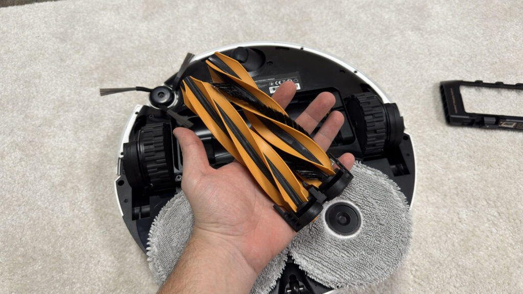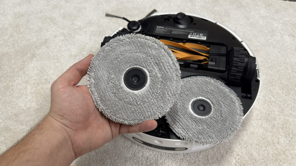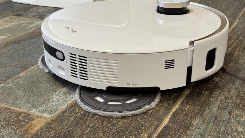 A robot felmosórendszere két nagy sebességgel (percenként 260-at) forgó mopra épül, képesek 8N lenyomó erővel dolgozni. Ezek egyszerűen, erőteljes mágnesekkel csatlakoznak. A felmosót képes tisztes magasságba emelni, ha szőnyegre ér (10,5 mm), sőt az alkalmazásban azt is beállíthatjuk, hogy ha nincs rá szükség, egyszerűen csak hagyja a dokkolón – emberi beavatkozás nélkül.