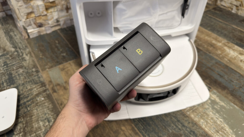 Ha van tiszta víz a dokkoló tartályában, akkor azt automatikusan fel tudja használni például a felmosáshoz vagy a mopok tisztításához, míg utóbbi során a szennyvíz is automatikusan az erre kijelölt tartályba kerül, hogy tényleg a lehető legkevesebb teendőnk legyen vele manuálisan.