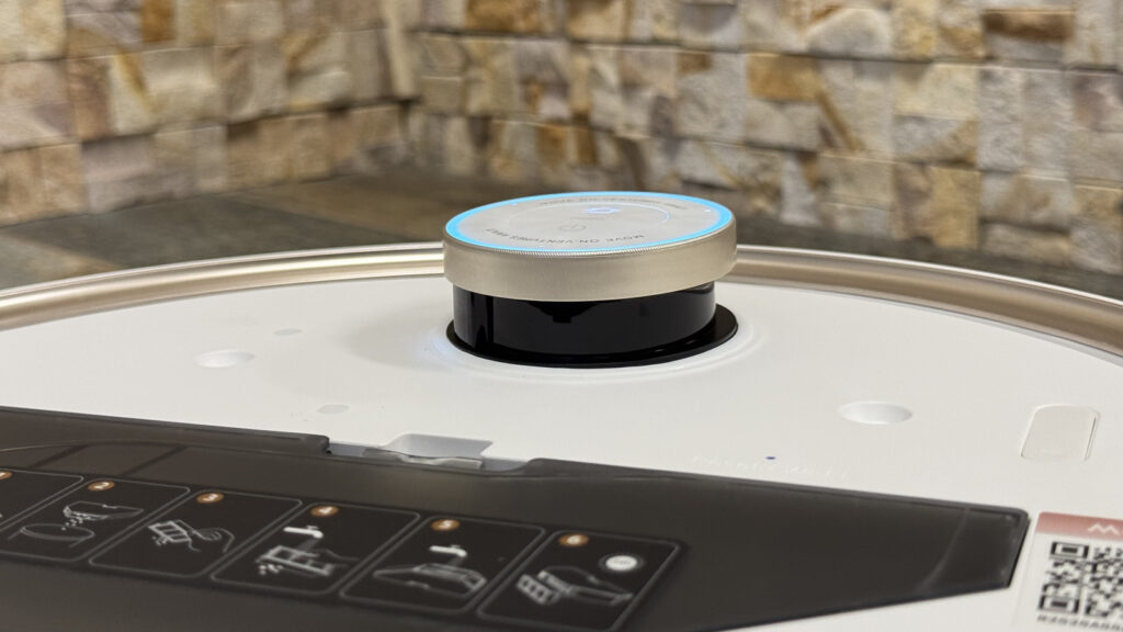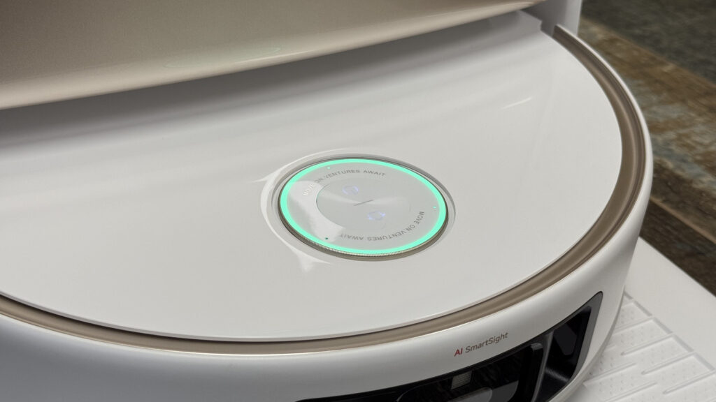 Ezek apróságok, de attól még ott vannak, és annak ellenére is feledhetők, hogy a fehér alapszínű, ámde arany árnyalatú berakásokkal díszített készülékház kifejezetten csinos összhatást kelt, sőt sok tekintetben hasonlít a Dreame X50 Ultrához, így például a behúzható szenzortorony vagy a körülötte található LED fény miatt.