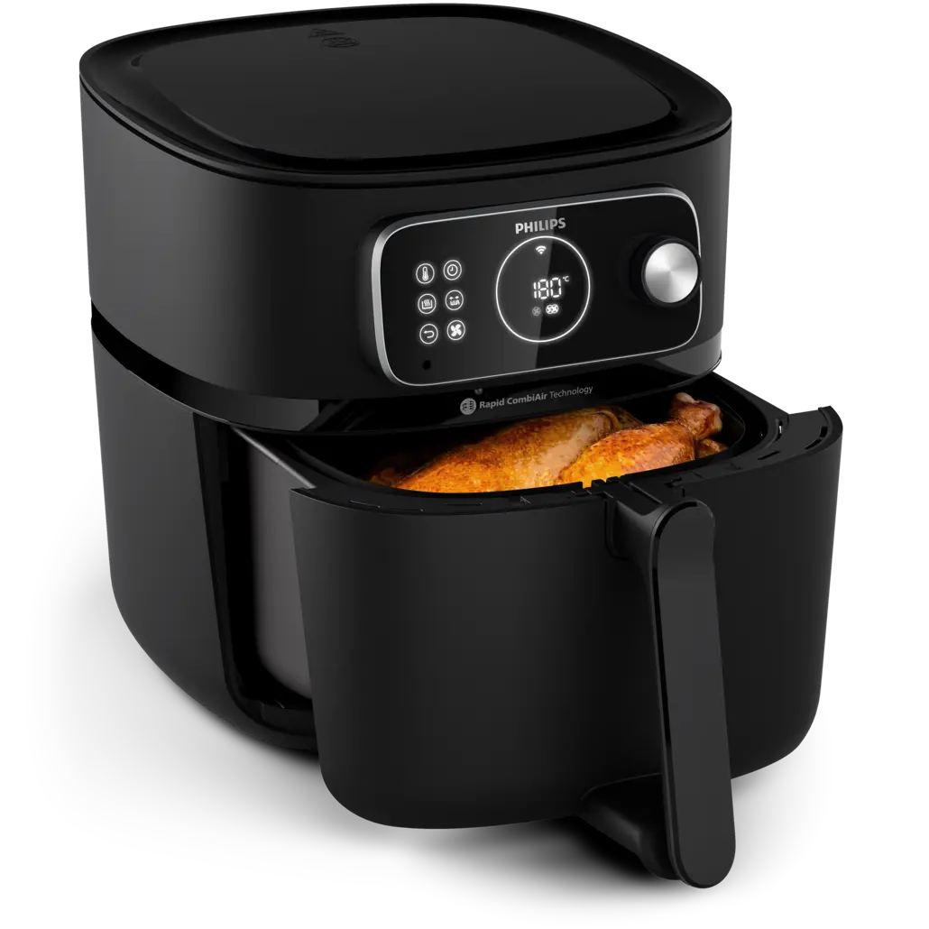 A fritőz alapját a Philips által szabadalmaztatott Rapid CombiAir technológia biztosítja, amely csillag alakú kialakításával sokkal dinamikusabb légáramlatot biztosít, ezáltal hatékonyan és egyenletesen oszlatva el a hőt az étel körül.