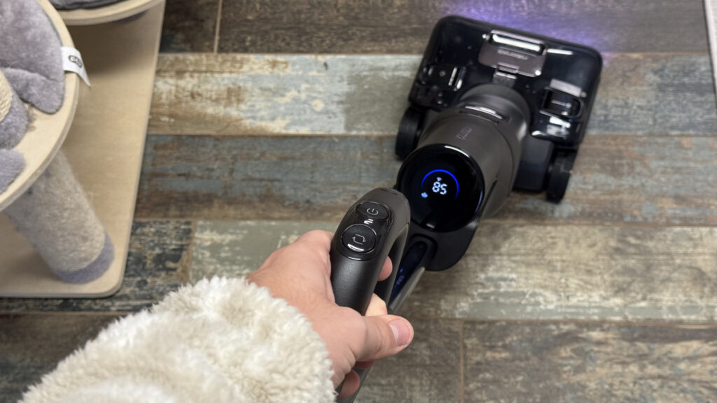 Mint említettük, nagyjából 60 másodpercet kell várni arra, hogy a gép elegendő gőzt termeljen a takarításhoz, amit egy visszaszámláló mutat. Ezzel nem is lenne gond, ha lehetne például a dokkolón végezni ezt.