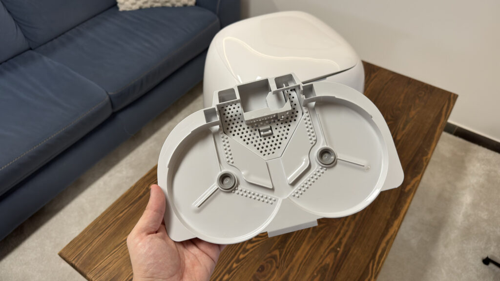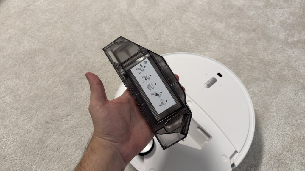 Ugyanez elmondható a belső modulokról is, mind a portartály, mind a víztartály egyszerűen kiemelhető és visszahelyezhető, miközben az egész robotporszívón érezni, hogy tartós használatra tervezték.