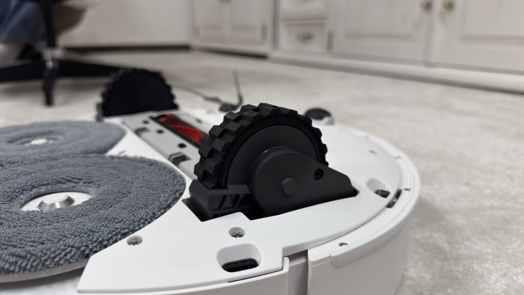 Amikor a felmosás után a robotporszívó elindul a dokkolóhoz, automatikusan felemeli a mopokat (erre szőnyeg érzékelésekor is képes), hogy ne csíkozza össze a padlót. Ezt követően a dokkoló automatikusan felismeri, ha a mopok nedvesek, és automatikusan képes elindítani a tisztítási ciklust, ami egy fontos kényelmi funkció.
