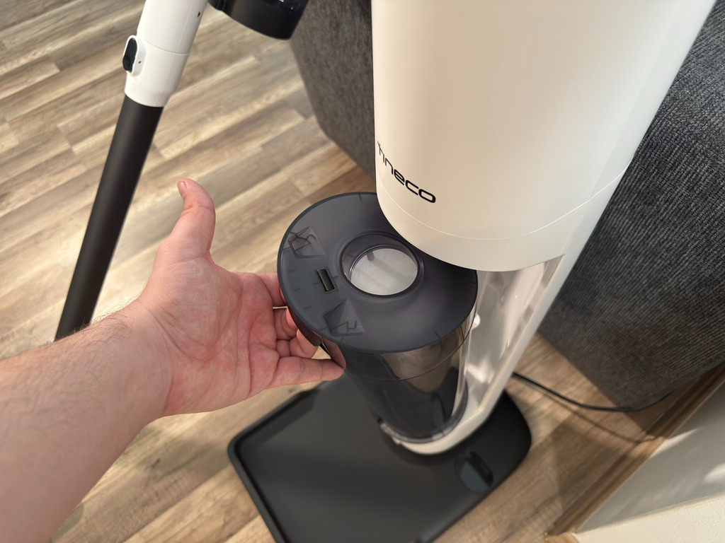 A robotporszívók esetében már megszoktuk, hogy az önürítő dokkoló egyfajta alapelvárás, a vezeték nélküli állóporszívóknál azonban még azért az újdonság erejével hat egy ilyen extra.