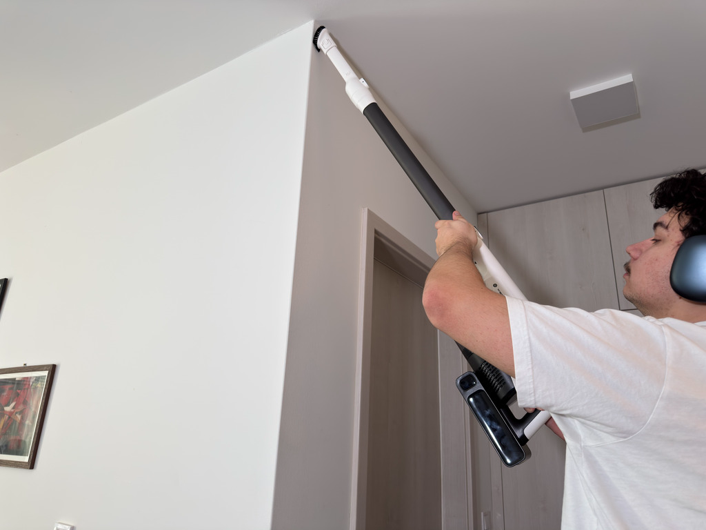 Sőt, az extra fejjel nagyon jól tudtuk portalanítani a polcokat, sőt ezzel pókhálóztunk és a kanapét is a segítségével porszívóztuk. Működik? Működik!